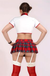 disfraz de colegiala dama atrevido coqueto con medias ligueros falda