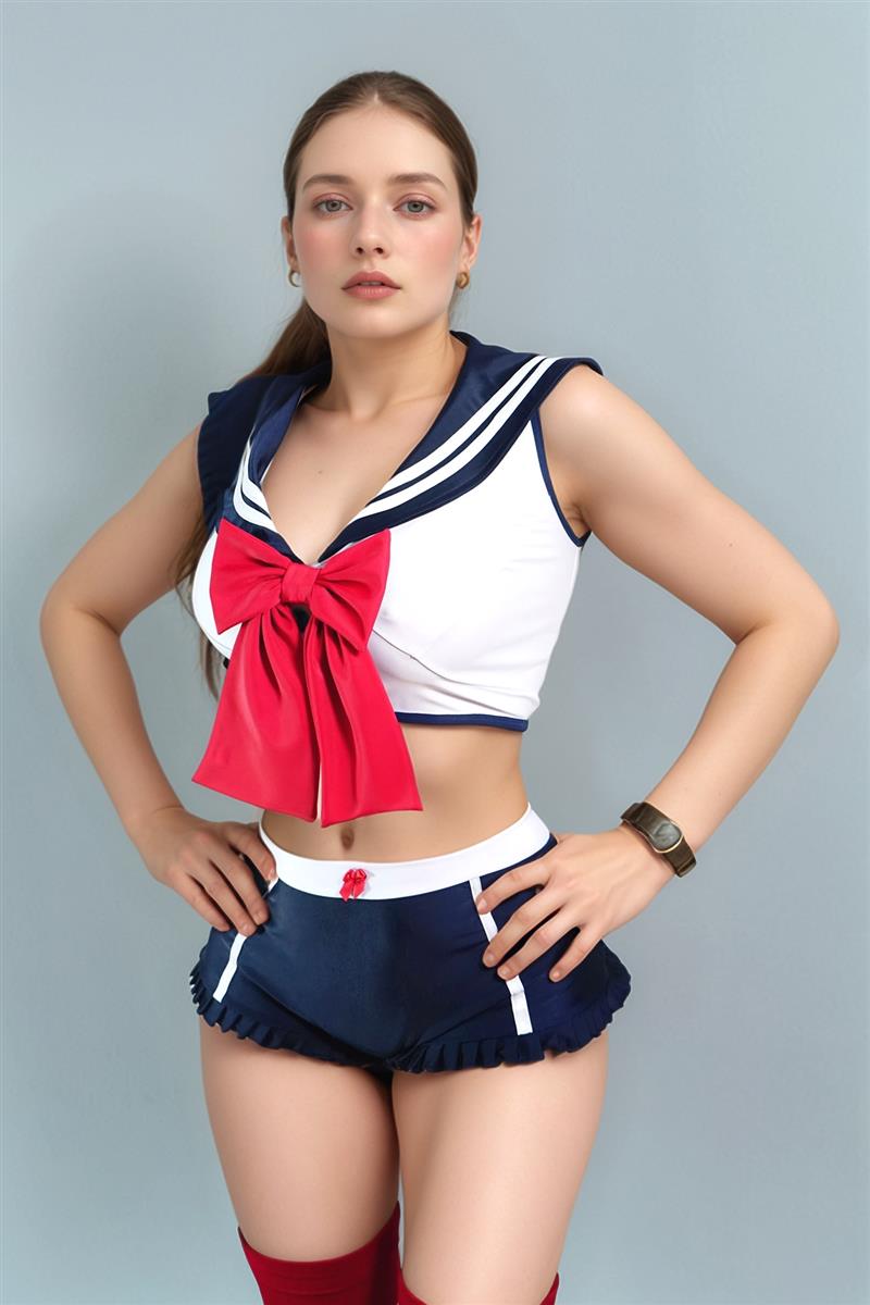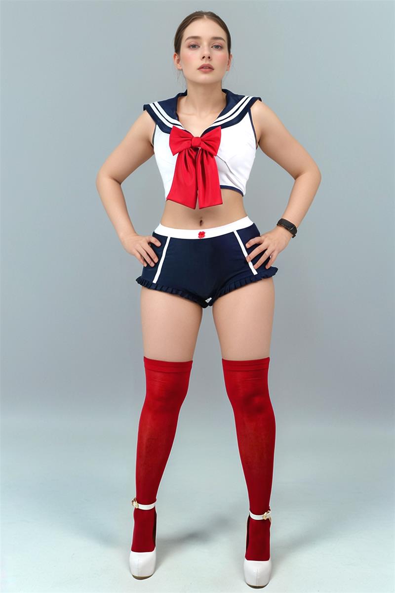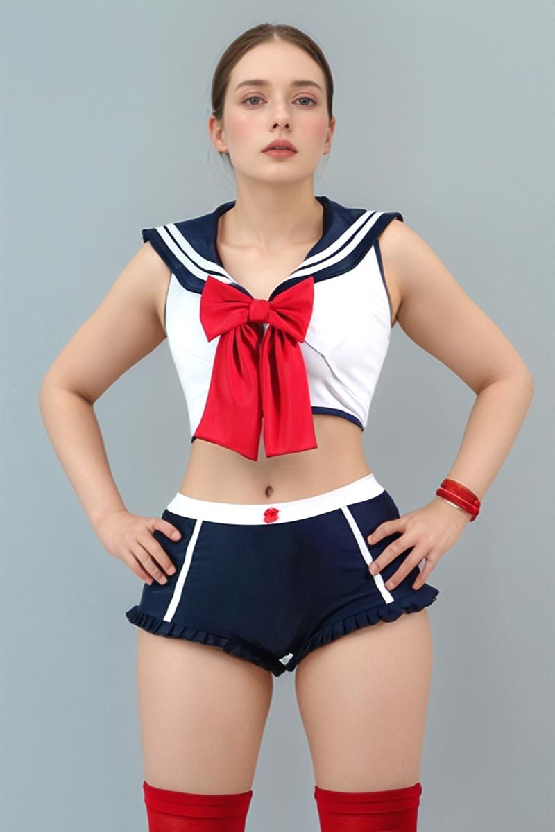 Disfraz Sailor short medias blusa con moño atrevido hot dama atrevido DIZ40