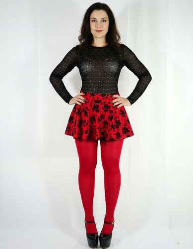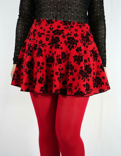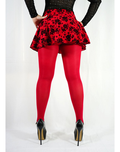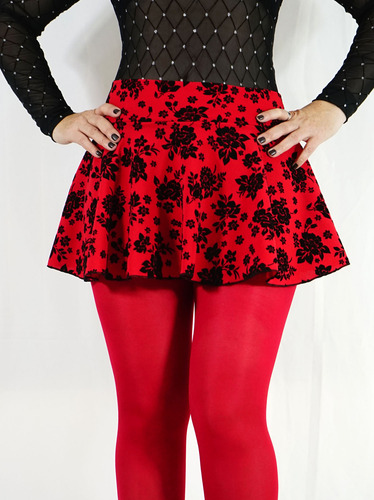 Minifalda Circular Corta + Mallas Opacas Tela Flock Rojo Hot Rojo Flores Unita F435